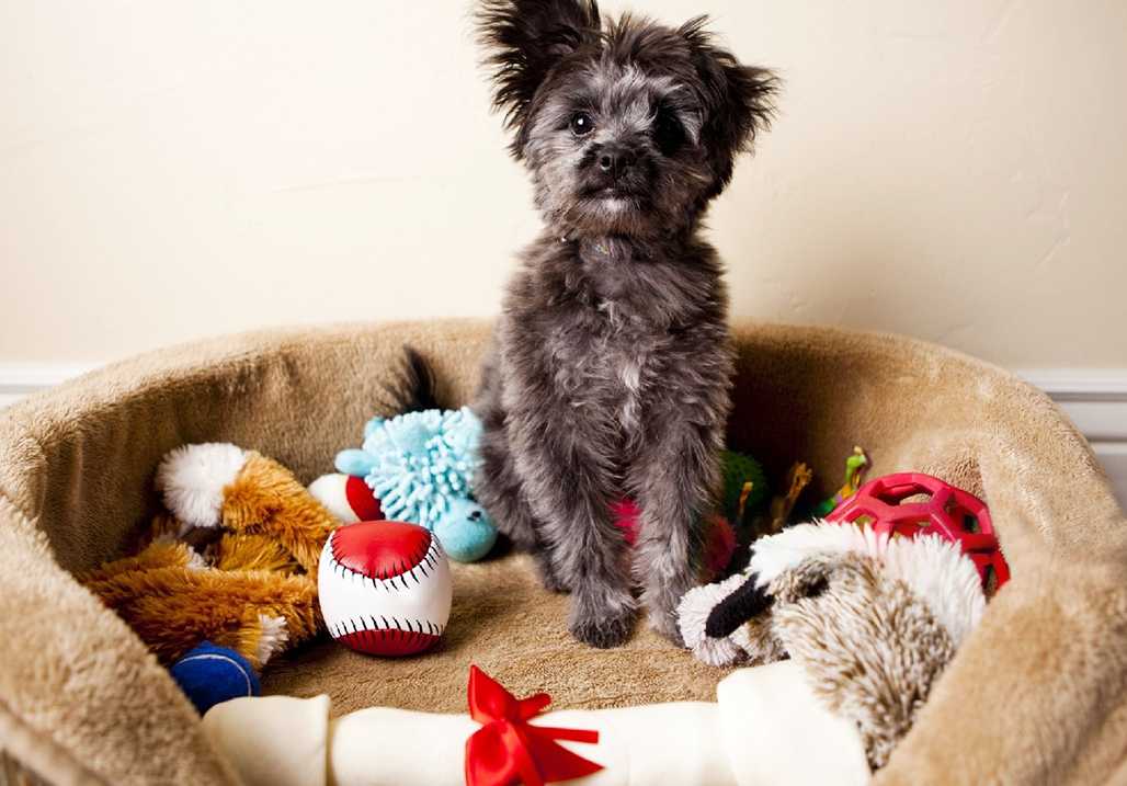 For example, find a corner near your family couch or an area near the fireplace (not too close, of course) where the dog can hang out while you relax. Throw some fun toys like the Petbobi Interactive Dog Toys Series and a bed that is not too big but fits and supports their bodies well.