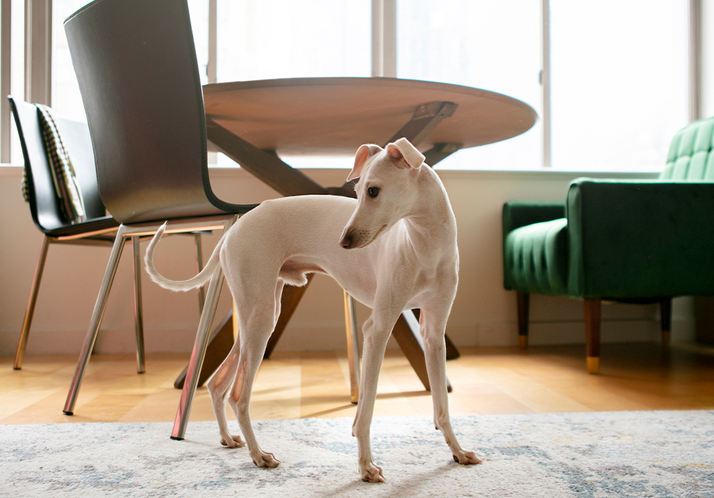 Think of the Whippet as a smaller version of a Greyhound. They have the same athletic design and shape, using their long nose structure to both hunt and win races. Whippets love human companionship. You can find them outside happily running in circles just as often as curled up on the couch near one of their owners.