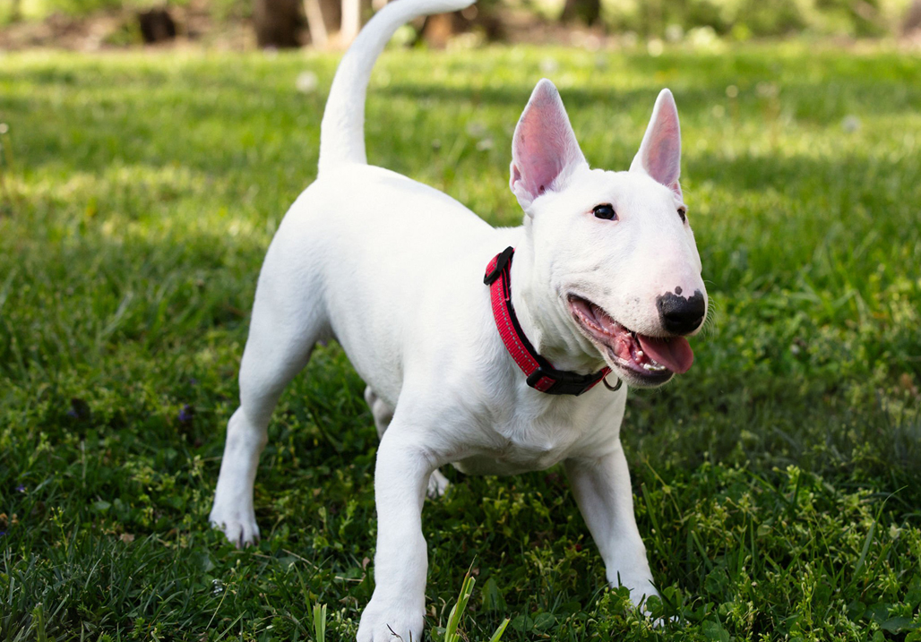 Bull Terriers became popular in the US after a few marketing campaigns from major brands. They have a much more petite build with a thick neck and skull you will see dodging in and out of holes, around agility courses, and over hillsides. They have a ton of energy, which is why you most often see them used in sporting events or with a lot of interactive toys like The Fighter Bobby from Petbobi.