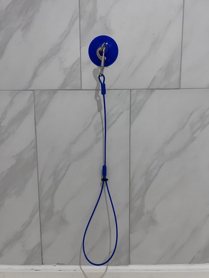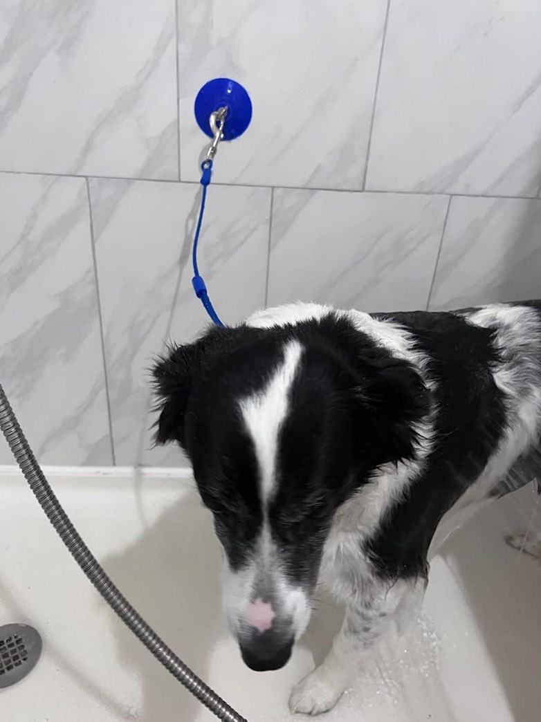 Is your furry friend a bundle of energy during bath time? Don't worry, we've got your back. Our Dog Bath Tether not only keeps your pup in place but also frees up your hands to give them a spa-level scrub-down. Say goodbye to a soggy bathroom and hello to a stress-free and effective dog shower time.