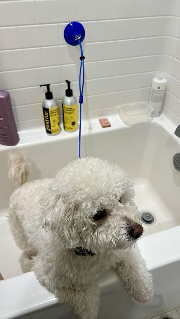 Such a nice idea for a puppy. Our puppy was always running around in the bath and got me all wet. I can fianlly say goodbye to those messy and wet baths. It's a game changer for bath time.